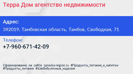 Терра-Дом, агентство недвижимости по адресу 392019, Тамбовская область, Тамбов, Свободная, 71 в дальнейшем Организация, размещена в следующих категориях: