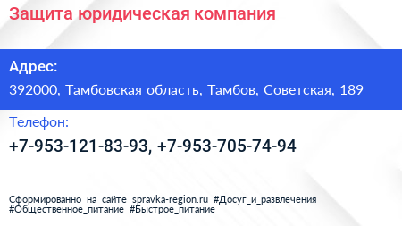 Защита, юридическая компания по адресу 392000, Тамбовская область, Тамбов, Советская, 189 в дальнейшем Организация, размещена в следующих категориях: