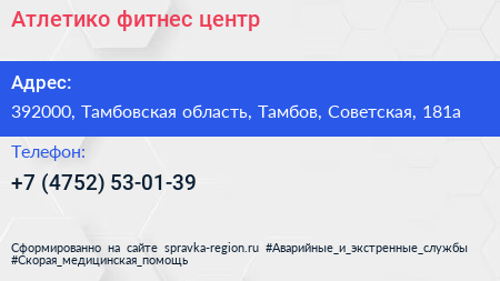 Атлетико, фитнес-центр по адресу 392000, Тамбовская область, Тамбов, Советская, 181а в дальнейшем Организация, размещена в следующих категориях: