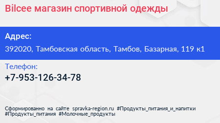 Bilcee, магазин спортивной одежды по адресу 392020, Тамбовская область, Тамбов, Базарная, 119 к1 в дальнейшем Организация, размещена в следующих категориях: