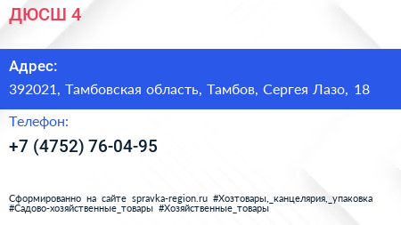 ДЮСШ №4 по адресу 392021, Тамбовская область, Тамбов, Сергея Лазо, 18 в дальнейшем Организация, размещена в следующих категориях: