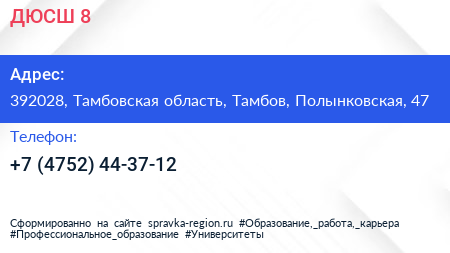 ДЮСШ №8 по адресу 392028, Тамбовская область, Тамбов, Полынковская, 47 в дальнейшем Организация, размещена в следующих категориях: