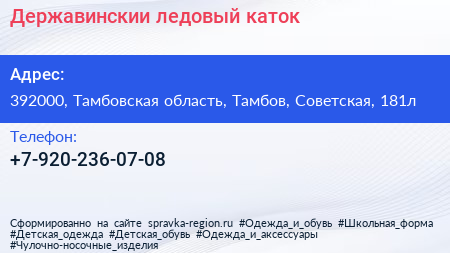 Державинский, ледовый каток по адресу 392000, Тамбовская область, Тамбов, Советская, 181л в дальнейшем Организация, размещена в следующих категориях: