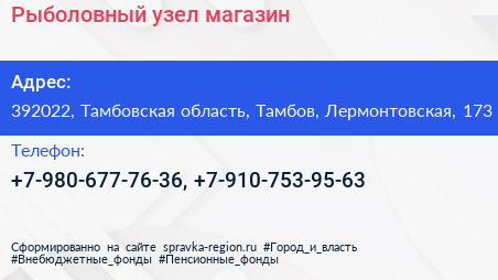 Рыболовный узел, магазин по адресу 392022, Тамбовская область, Тамбов, Лермонтовская, 173 в дальнейшем Организация, размещена в следующих категориях: