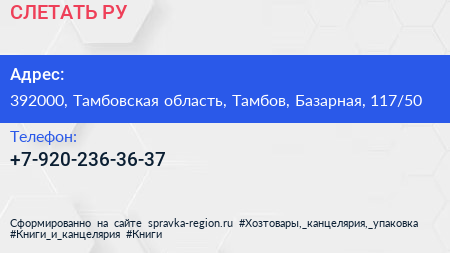 СЛЕТАТЬ.РУ по адресу 392000, Тамбовская область, Тамбов, Базарная, 117/50 в дальнейшем Организация, размещена в следующих категориях: