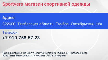 Sportvers, магазин спортивной одежды по адресу 392000, Тамбовская область, Тамбов, Октябрьская, 16а в дальнейшем Организация, размещена в следующих категориях: