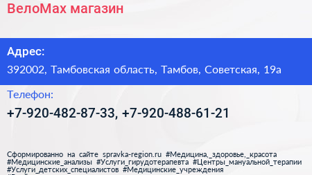 ВелоMax, магазин по адресу 392002, Тамбовская область, Тамбов, Советская, 19а в дальнейшем Организация, размещена в следующих категориях: