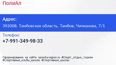 ПолиАл по адресу 392008, Тамбовская область, Тамбов, Чичканова, 7/1 в дальнейшем Организация, размещена в следующих категориях: