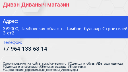 Диван Диваныч, магазин по адресу 392000, Тамбовская область, Тамбов, бульвар Строителей, 3 ст2 в дальнейшем Организация, размещена в следующих категориях: