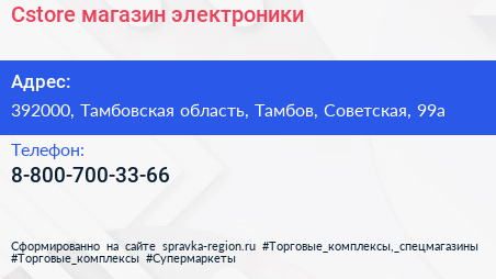 Cstore, магазин электроники по адресу 392000, Тамбовская область, Тамбов, Советская, 99а в дальнейшем Организация, размещена в следующих категориях: