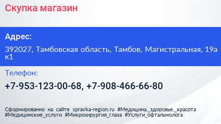 Скупка-магазин по адресу 392027, Тамбовская область, Тамбов, Магистральная, 19а к1 в дальнейшем Организация, размещена в следующих категориях: