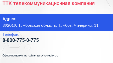 ТТК, телекоммуникационная компания по адресу 392019, Тамбовская область, Тамбов, Чичерина, 11 в дальнейшем Организация, размещена в следующих категориях: