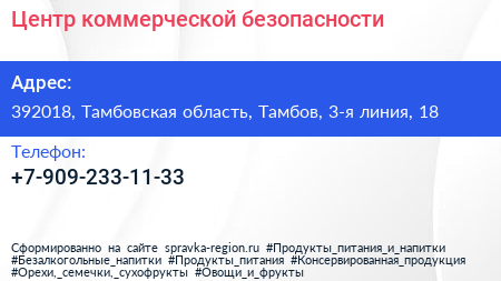 Центр коммерческой безопасности по адресу 392018, Тамбовская область, Тамбов, 3-я линия, 18 в дальнейшем Организация, размещена в следующих категориях: