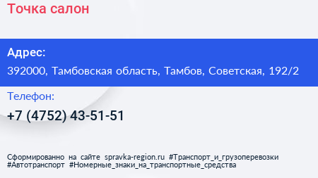 Точка, салон по адресу 392000, Тамбовская область, Тамбов, Советская, 192/2 в дальнейшем Организация, размещена в следующих категориях: