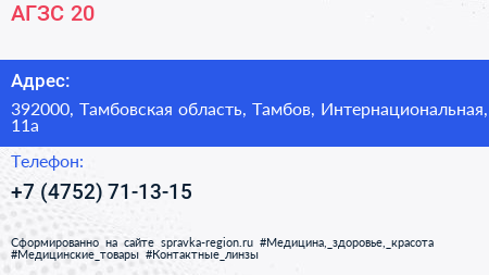 АГЗС№20 по адресу 392000, Тамбовская область, Тамбов, Интернациональная, 11а в дальнейшем Организация, размещена в следующих категориях: