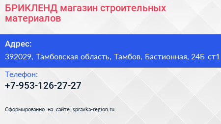 БРИКЛЕНД, магазин строительных материалов по адресу 392029, Тамбовская область, Тамбов, Бастионная, 24Б ст1 в дальнейшем Организация, размещена в следующих категориях: