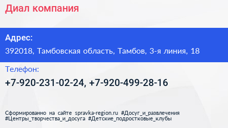 Диал, компания по адресу 392018, Тамбовская область, Тамбов, 3-я линия, 18 в дальнейшем Организация, размещена в следующих категориях: