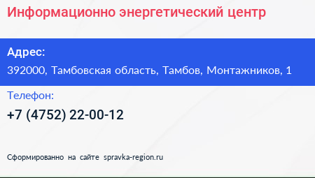 Информационно-энергетический центр по адресу 392000, Тамбовская область, Тамбов, Монтажников, 1 в дальнейшем Организация, размещена в следующих категориях: