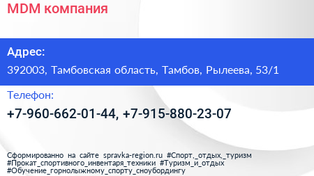 MDM, компания по адресу 392003, Тамбовская область, Тамбов, Рылеева, 53/1 в дальнейшем Организация, размещена в следующих категориях:
