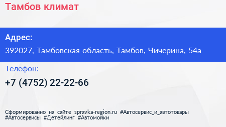 Тамбов климат по адресу 392027, Тамбовская область, Тамбов, Чичерина, 54а в дальнейшем Организация, размещена в следующих категориях: