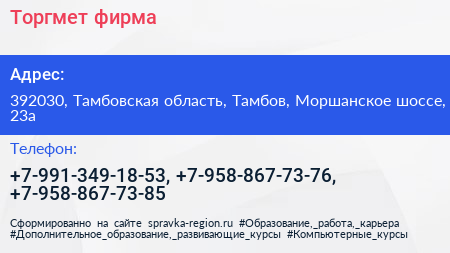 Адрес: Тамбовская область, Тамбов, проезд Монтажников, 2г ст1