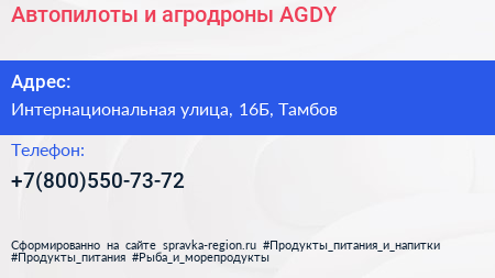 Автопилоты и агродроны AGDY по адресу Интернациональная улица, 16Б, Тамбов в дальнейшем Организация, размещена в следующих категориях: