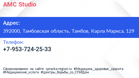 AMC Studio по адресу 392000, Тамбовская область, Тамбов, Карла Маркса, 129 в дальнейшем Организация, размещена в следующих категориях: