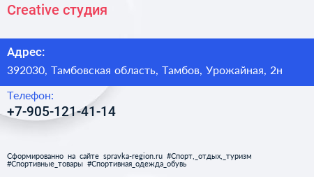 Creative, студия по адресу 392030, Тамбовская область, Тамбов, Урожайная, 2н в дальнейшем Организация, размещена в следующих категориях:
