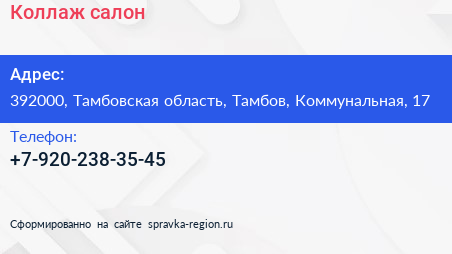 Коллаж, салон по адресу 392000, Тамбовская область, Тамбов, Коммунальная, 17 в дальнейшем Организация, размещена в следующих категориях: