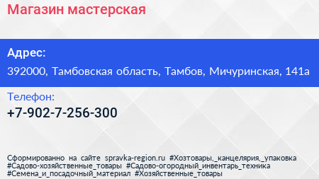 Магазин-мастерская по адресу 392000, Тамбовская область, Тамбов, Мичуринская, 141а в дальнейшем Организация, размещена в следующих категориях: