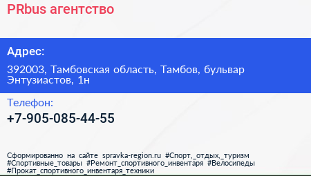 PRbus, агентство по адресу 392003, Тамбовская область, Тамбов, бульвар Энтузиастов, 1н в дальнейшем Организация, размещена в следующих категориях:
