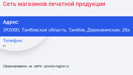 Сеть магазинов печатной продукции по адресу 392000, Тамбовская область, Тамбов, Державинская, 28а в дальнейшем Организация, размещена в следующих категориях: