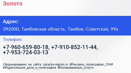 Золото по адресу 392000, Тамбовская область, Тамбов, Советская, 99а в дальнейшем Организация, размещена в следующих категориях: