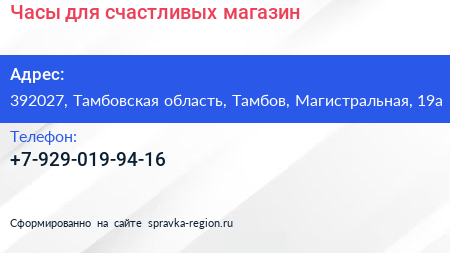 Часы для счастливых, магазин по адресу 392027, Тамбовская область, Тамбов, Магистральная, 19а в дальнейшем Организация, размещена в следующих категориях: