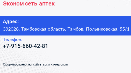 Эконом, сеть аптек по адресу 392028, Тамбовская область, Тамбов, Полынковская, 55/1 в дальнейшем Организация, размещена в следующих категориях: