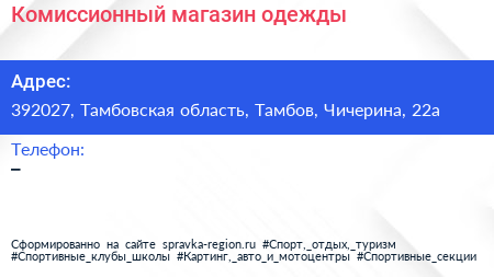 Комиссионный магазин одежды по адресу 392027, Тамбовская область, Тамбов, Чичерина, 22а в дальнейшем Организация, размещена в следующих категориях:
