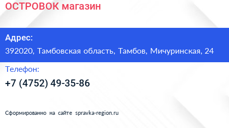 ОСТРОВОК, магазин по адресу 392020, Тамбовская область, Тамбов, Мичуринская, 24 в дальнейшем Организация, размещена в следующих категориях: