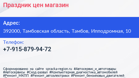 Праздник цен, магазин по адресу 392000, Тамбовская область, Тамбов, Ипподромная, 10 в дальнейшем Организация, размещена в следующих категориях: