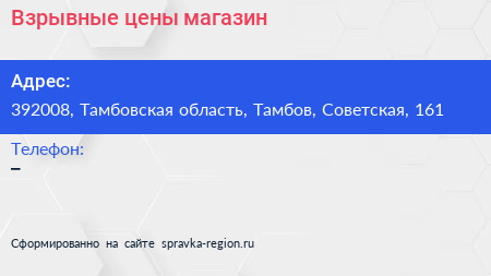 Взрывные цены, магазин по адресу 392008, Тамбовская область, Тамбов, Советская, 161 в дальнейшем Организация, размещена в следующих категориях:
