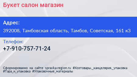 Букет, салон-магазин по адресу 392008, Тамбовская область, Тамбов, Советская, 161 к3 в дальнейшем Организация, размещена в следующих категориях: