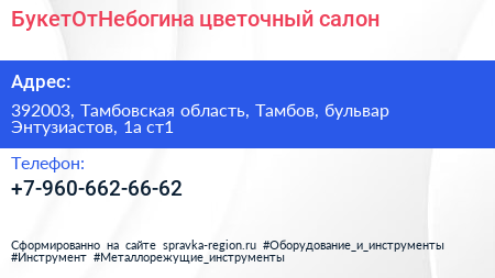 БукетОтНебогина, цветочный салон по адресу 392003, Тамбовская область, Тамбов, бульвар Энтузиастов, 1а ст1 в дальнейшем Организация, размещена в следующих категориях: