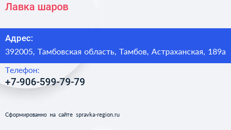 Лавка шаров по адресу 392005, Тамбовская область, Тамбов, Астраханская, 189а в дальнейшем Организация, размещена в следующих категориях: