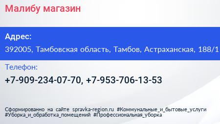 Малибу, магазин по адресу 392005, Тамбовская область, Тамбов, Астраханская, 188/1 в дальнейшем Организация, размещена в следующих категориях: