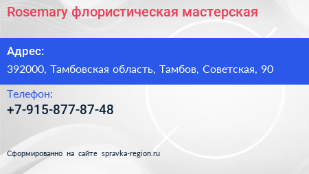 Rosemary, флористическая мастерская по адресу 392000, Тамбовская область, Тамбов, Советская, 90 в дальнейшем Организация, размещена в следующих категориях: