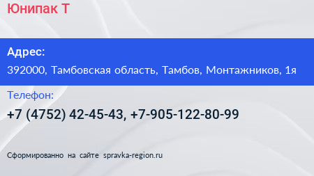 Юнипак-Т по адресу 392000, Тамбовская область, Тамбов, Монтажников, 1я в дальнейшем Организация, размещена в следующих категориях: