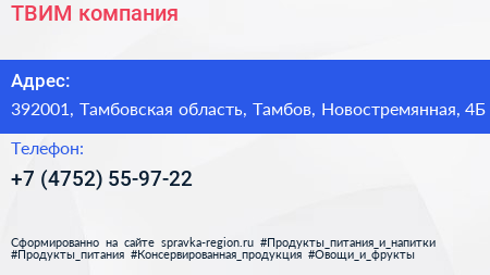 ТВИМ, компания по адресу 392001, Тамбовская область, Тамбов, Новостремянная, 4Б в дальнейшем Организация, размещена в следующих категориях: