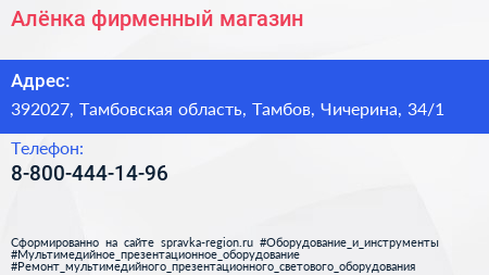 Алёнка, фирменный магазин по адресу 392027, Тамбовская область, Тамбов, Чичерина, 34/1 в дальнейшем Организация, размещена в следующих категориях:
