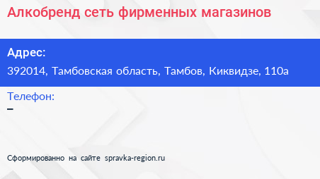 Алкобренд, сеть фирменных магазинов по адресу 392014, Тамбовская область, Тамбов, Киквидзе, 110а в дальнейшем Организация, размещена в следующих категориях: