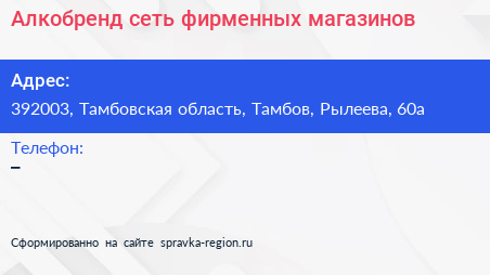 Алкобренд, сеть фирменных магазинов по адресу 392003, Тамбовская область, Тамбов, Рылеева, 60а в дальнейшем Организация, размещена в следующих категориях: