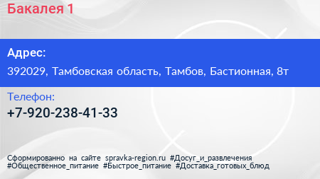 Бакалея №1 по адресу 392029, Тамбовская область, Тамбов, Бастионная, 8т в дальнейшем Организация, размещена в следующих категориях:
